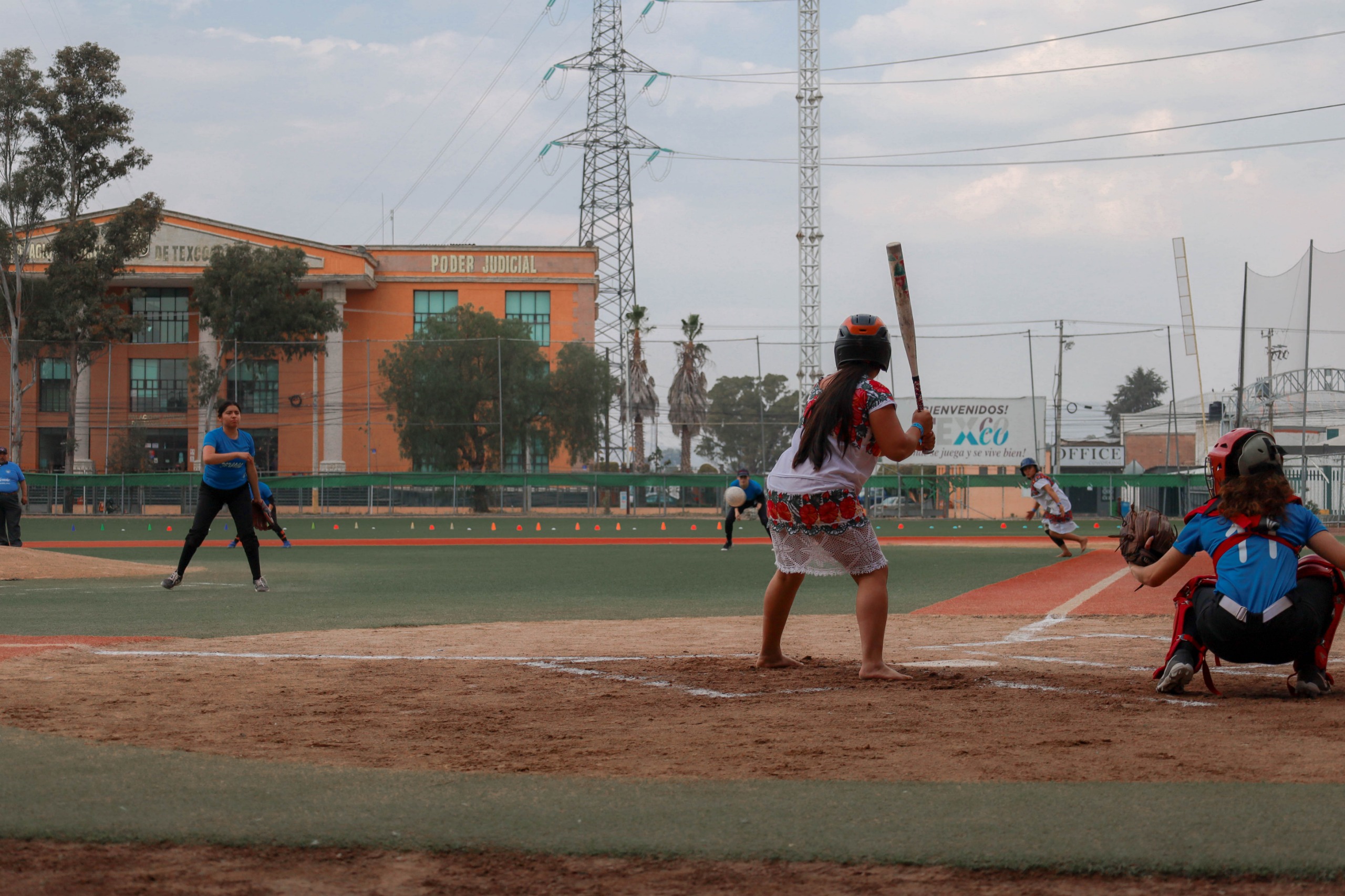 El grito de Plaaay boool se escuchó en el campo de béisbol de Texcoco, en dónde tuvo lugar el partido de exhibición entre la Diablillas de Honzdozoc y la selección de softbol de Texcoco.