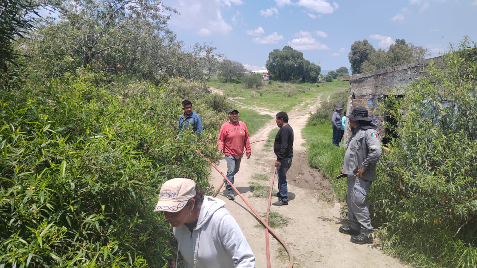 Bajo la Coordinación de Protección Civil, Gestión Integral de Riesgos, Bomberos y Atención Médica Prehospitalaria, unificaron los trabajos con la Dirección de Agua Potable, Alcantarillado y Obras Públicas, se dieron a la tarea de reforzar los bordes del jagüey y canalizar el exceso de agua a una barranca que permitiera el desfogue seguro.