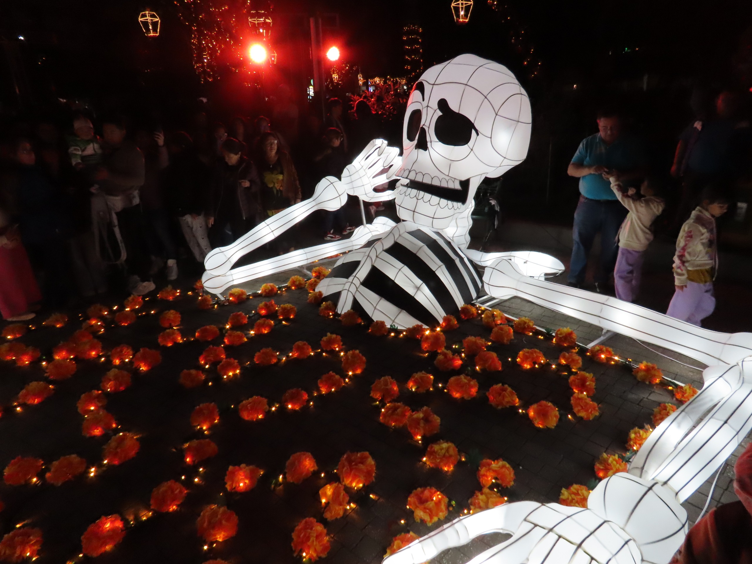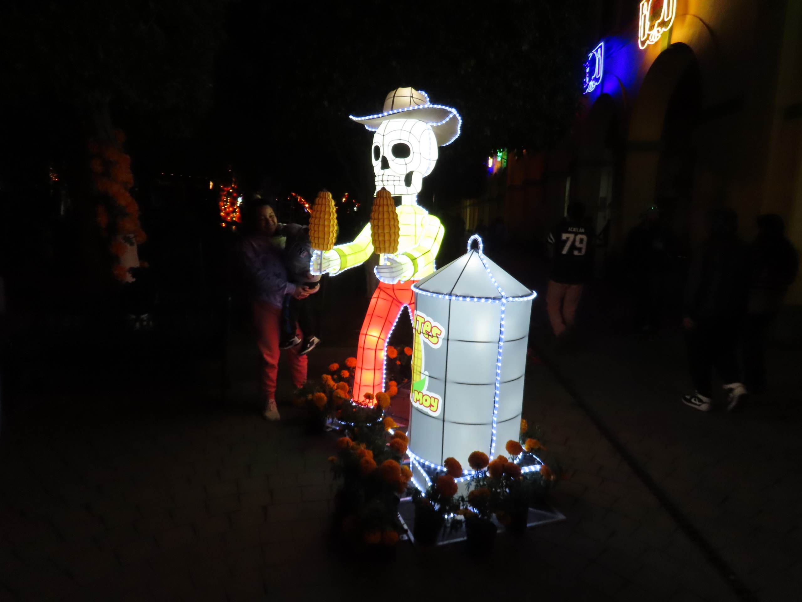 Entres música y baile se presentó la programación y enseguida el jardín municipal quedó en penumbras, a la cuenta 10, el presidente municipal de Texcoco Nazario Gutiérrez Martínez acompañado por la presidenta honoraria del Sistema Municipal para el Desarrollo Integral de la Familia, Yesenia Armas Tobón, el Secretario del Ayuntamiento José Alfonso Valtierra Guzmán, el ex presidente de Texcoco Jesús Adán Gordo Ramírez, las regidoras Nalleli Valles y María Sosa, el regidor Cesar Vilchis, así como directores de las diferentes áreas, se encendieron las figuras de calaveritas y las luces decorativas alusivas al día de muertos.